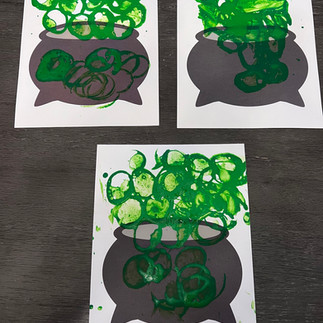 This might have been the kids’ favorite activity of the week! Using paint mixed with dish soap, They made bubbles on paper to make their own cauldron artwork. The look of amazement on their faces as the bubbles grew and popped on the paper was priceless.